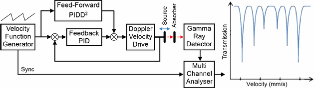 - Received the Thomas Gibb Wilson award for the research and development of a constant acceleration drive system for a Mössbauer spectrometer, which makes use of the Doppler effect in the study of nuclear structure to quantify the hyperfine transitions between nuclear energy levels identified by the resonant absorption and isotropic re-emission of gamma rays. Following detailed analysis of the electro-mechanical moving coil velocity transducer, the resulting predictive feed-forward control waveform, containing components proportional to the integral and first and second derivatives of the required response, reduced feedback to a second order correction which significantly improved the linearity and performance over the velocity range of interest.